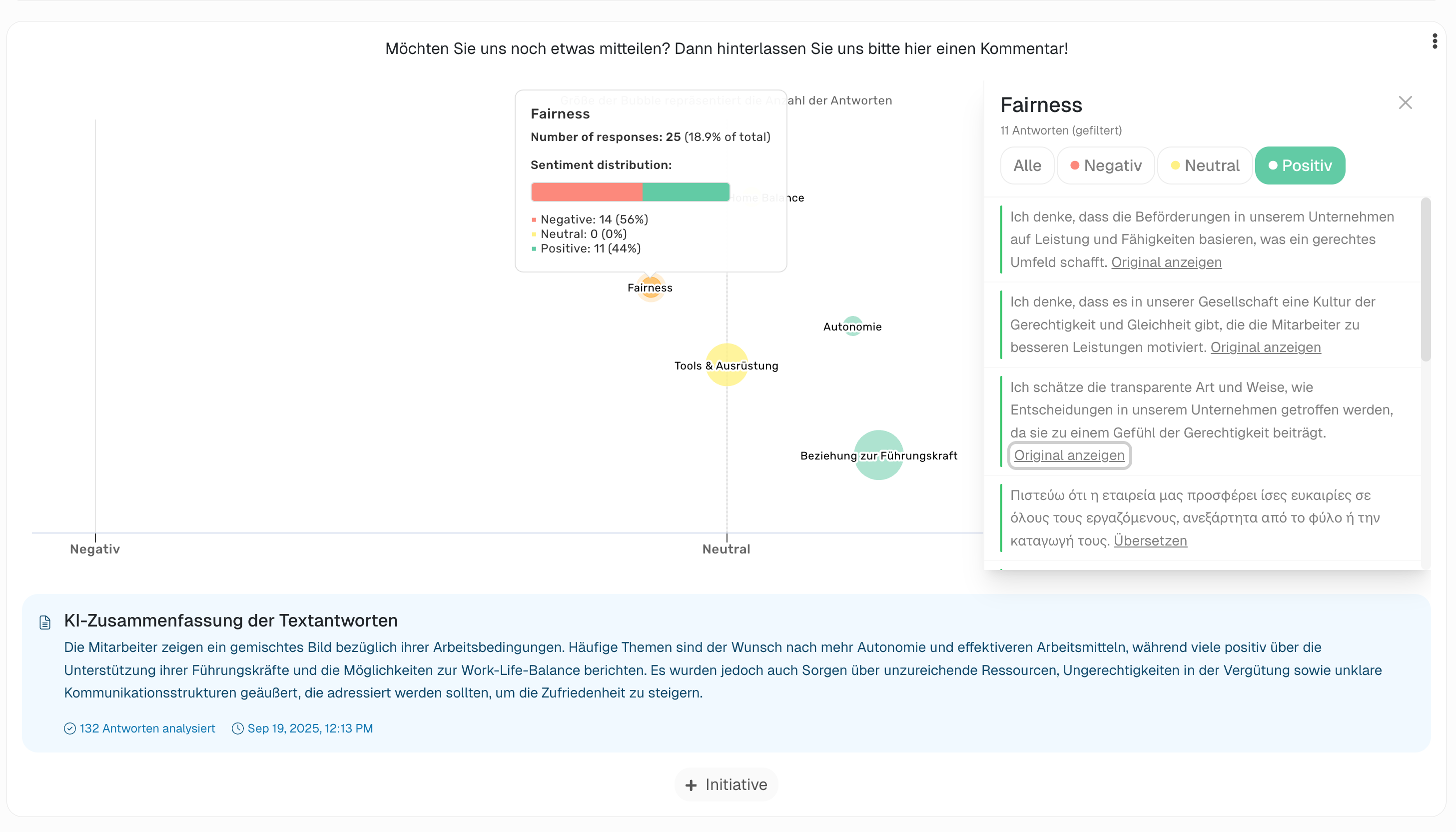 Get our AI Topics to categorize and summarize insights for you. See them in your preferred language, even if the answers were submitted in multiple ones